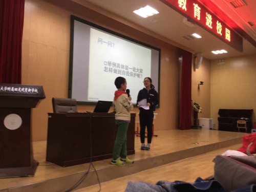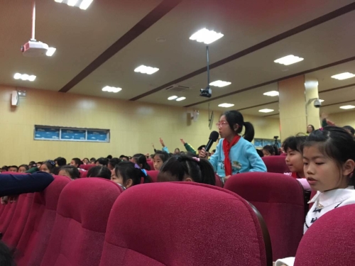 活动第二环节是由2016级马铭、王一凡、辛瑞明为同学们带来的法律讲座。马铭以浅白易懂的语言,轻松活泼的交流方式,从学校、家庭、社会、司法四个角度准确地为同学们解释与分析了我国未成年人保护的方式以及其取得的成就和问题。王一凡同学列举了许多同学们特别感兴趣的实例并使用了大量视频为大家介绍了一些基本的防范技巧,为刚刚开始接触网络的小学生讲述了网络安全的相关问题,引导孩子们正确上网,健康上网,防止网络对青少年发展的潜在危害。辛瑞明同学从如何避免校园暴力、遇到校园暴力如何处理以及如何走出校园暴力阴影三个方面为同学们进行了讲解,讲座内容结合舞台剧,让同学们意识到虽然身边可能没有校园暴力,但是我们依然要保持阳光的心态和积极的生活习惯,才能融洽地处理同学朋友们之间的关系,才能更好地融入集体中去。同学们认真地做笔记,记下了许多法律知识。在回答问题的环节中,同学们积极举手,反响热烈,互动良好,运用他们在讲座中学习的知识正确的回答了问题。