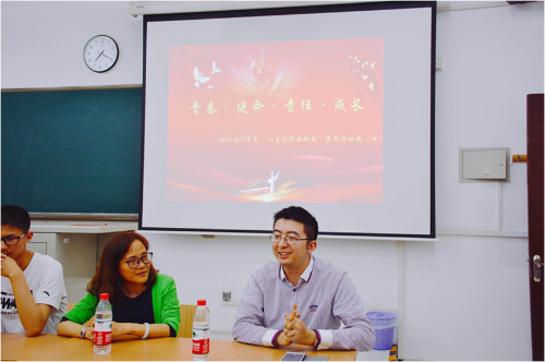 我系2013级毕业生平理达同学在毕业后,赴重庆市万盛区进盛实验中学支教。近日,其支教的中学受邀观摩由我院主办的2018北京国际模拟联合国大会。利用参会间隙以“青春·使命·责任·成长”为题,和我系同学分享了支教经历和感受。本次交流会由国际法系党总支书记李淑媛老师主持,金盛中学尹仕敏师生等5人以及国际法系部分老师和同学参加了本次活动。