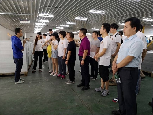 7月19日上午9时许,在渭南市政府、渭南市教育局、渭南市司法局、澄城县领导的陪同下,实践团师生前往渭南市澄城县拓日新能源科技有限公司参观调研澄城县经济新的增长点——光伏玻璃与光伏电池组件生产线。在调研交流的过程中,师生在车间近距离感受到了科技对于生产力发展的巨大作用,以及地方政府对经济发展、环境保护、保障民生的高度重视。